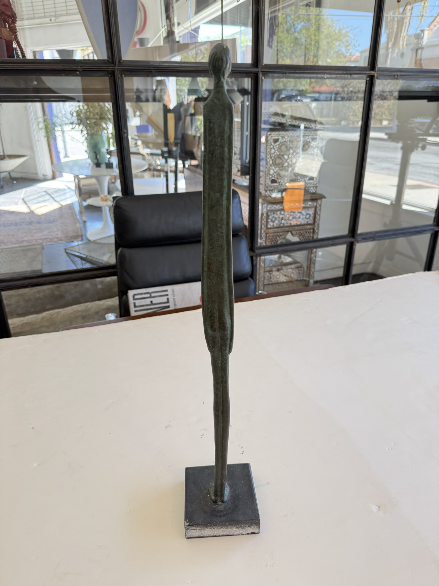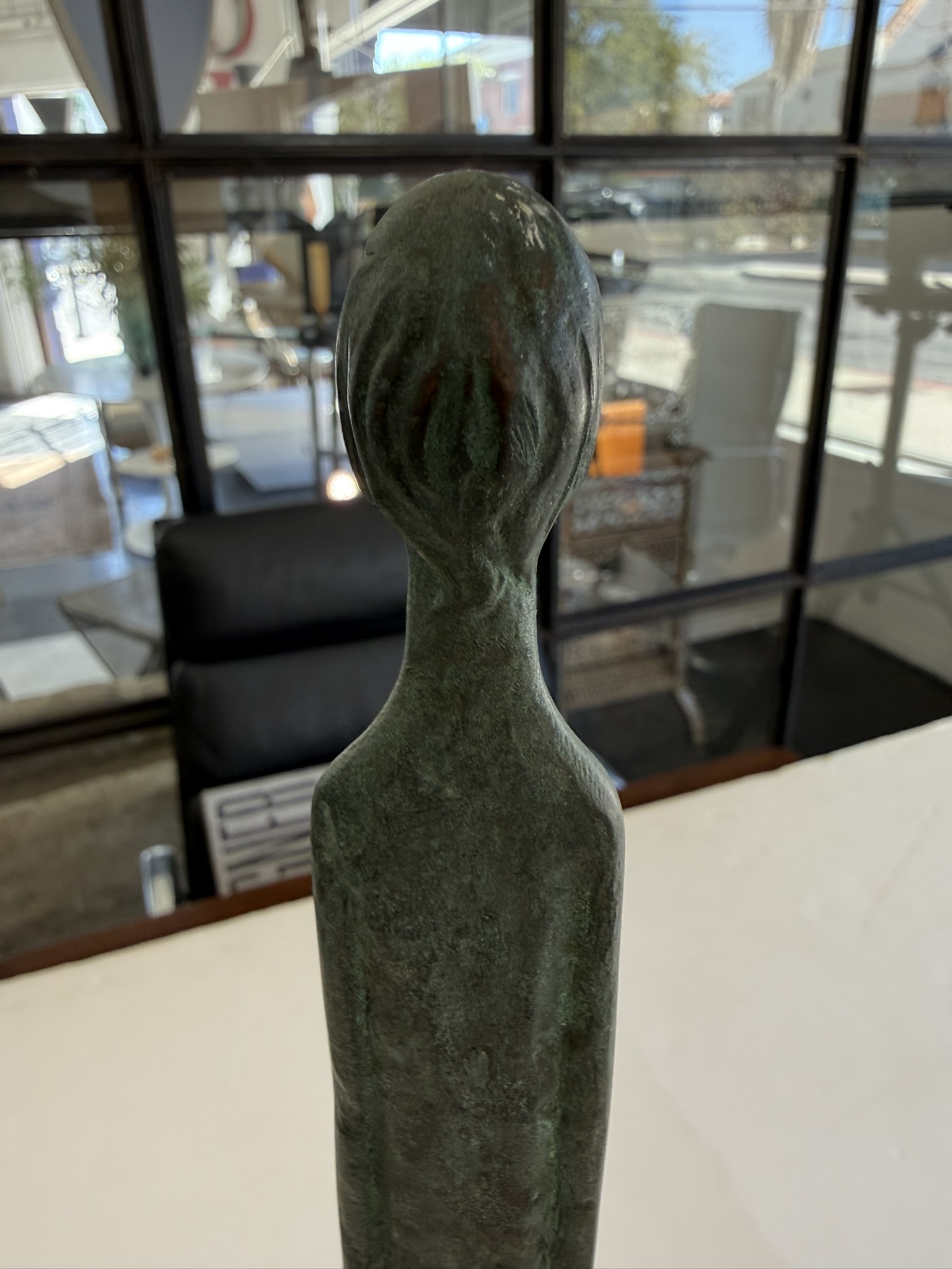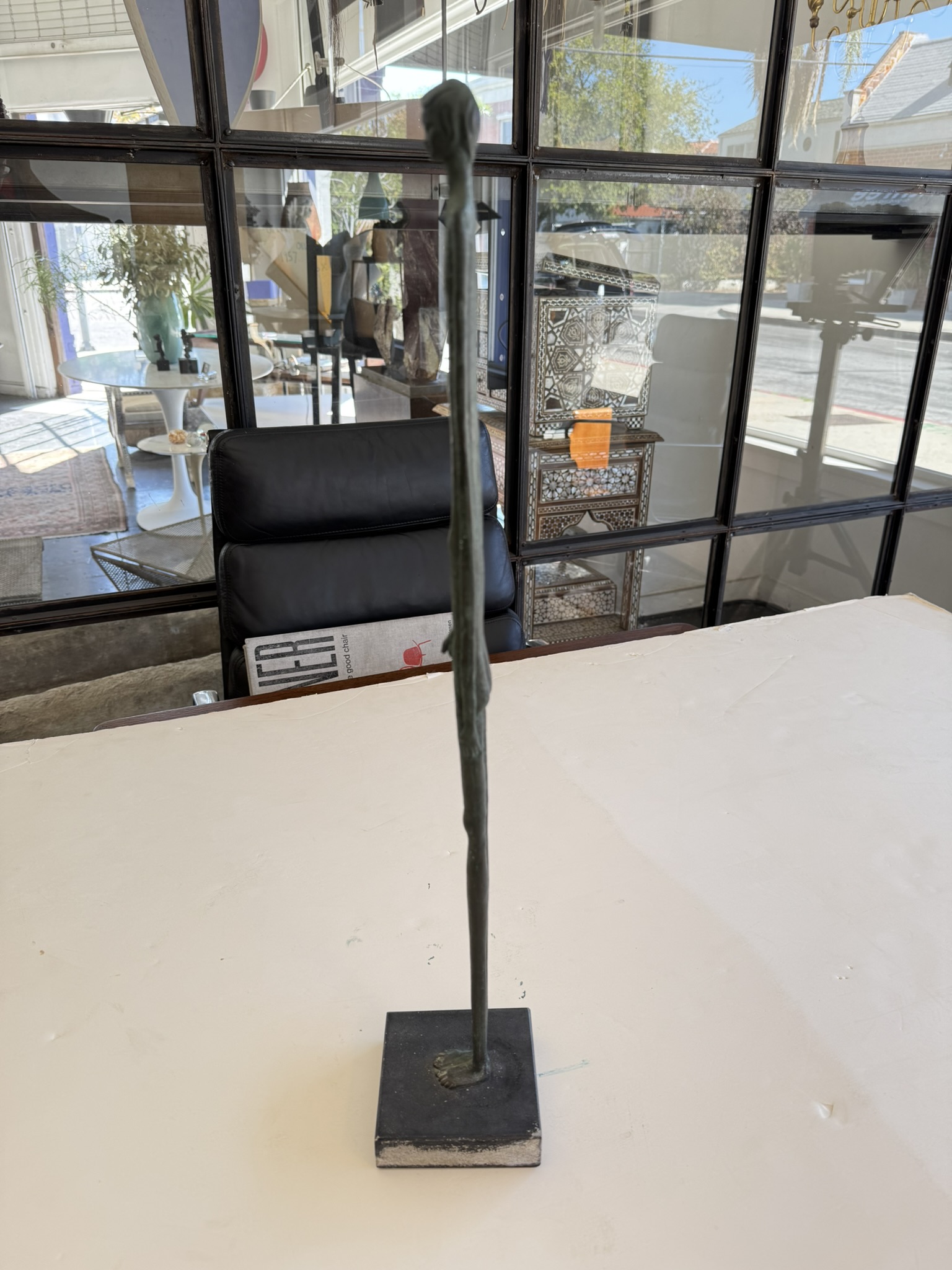 “Ombra Della Serra” (Shadow of the Evening), Grand Tour souvenir after the 3rd Century BC. Etruscan bronze, hand-crafted in Italy, 1950s. The original is in the collection of the Museo Etrusco Geernacci, Bolterra, and was found in the first excavations of the Volterran Necropolis around 1728. The sculpture’s form inspired the name it was given reflecting the long shadows cast in the evening as night falls. It is believed that the form of this iconic sculpture inspired the 20th Century works of Diego Giacometti.