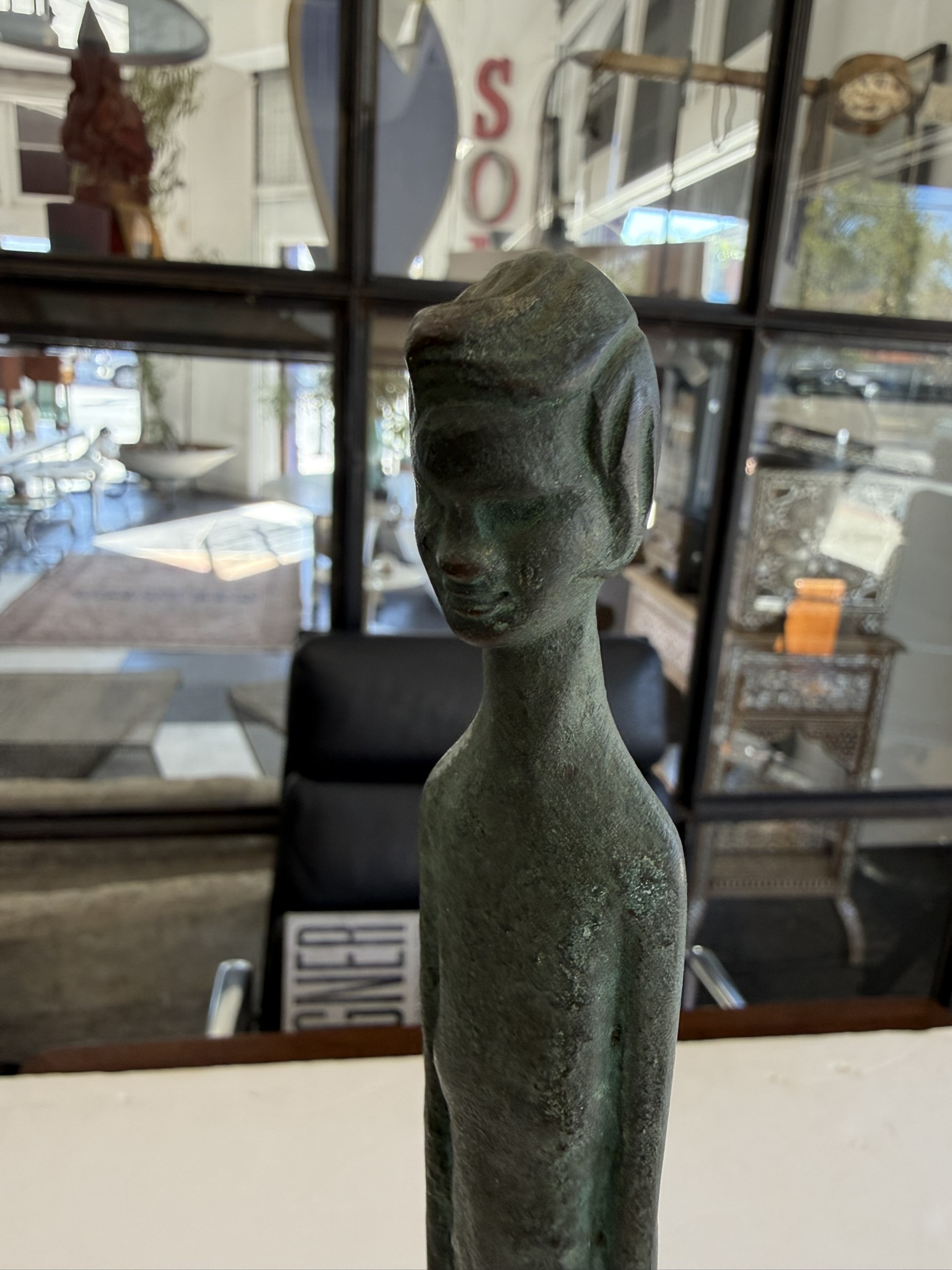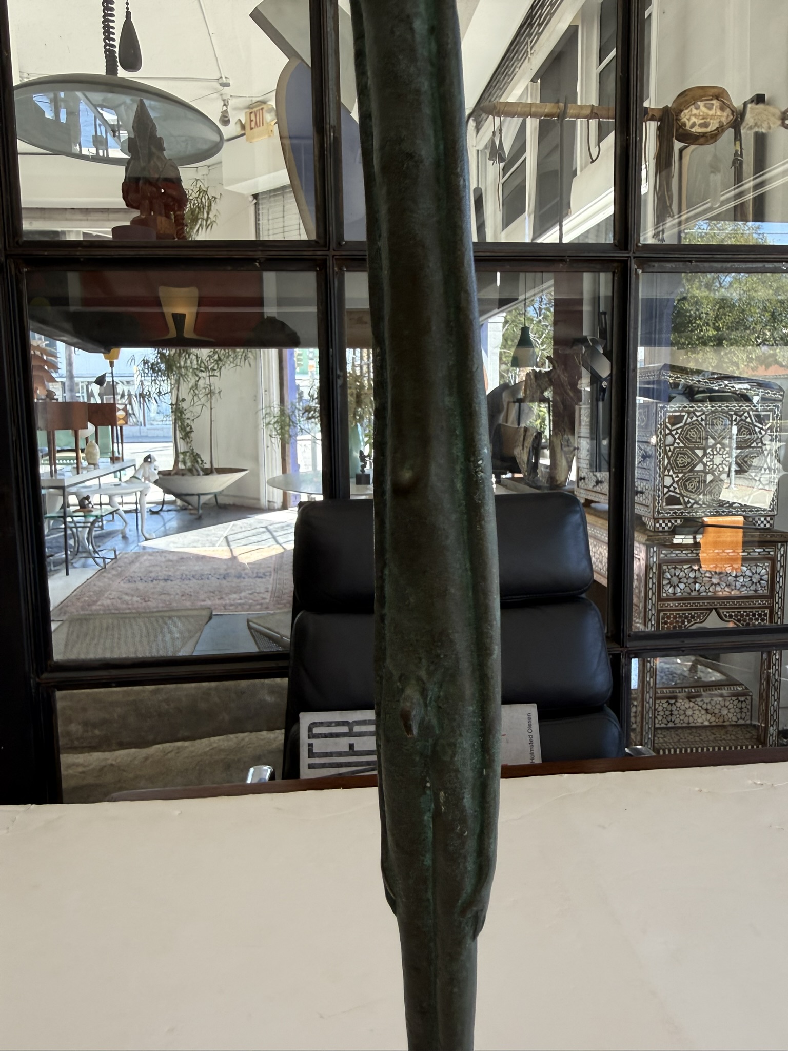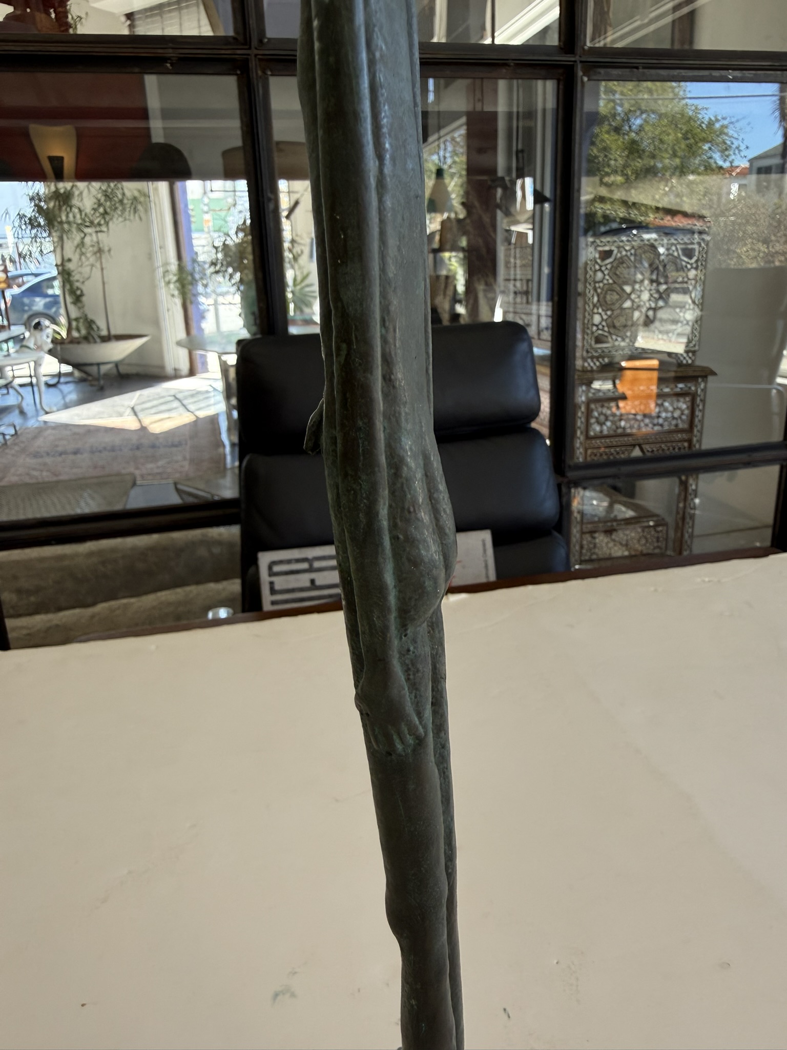 “Ombra Della Serra” (Shadow of the Evening), Grand Tour souvenir after the 3rd Century BC. Etruscan bronze, hand-crafted in Italy, 1950s. The original is in the collection of the Museo Etrusco Geernacci, Bolterra, and was found in the first excavations of the Volterran Necropolis around 1728. The sculpture’s form inspired the name it was given reflecting the long shadows cast in the evening as night falls. It is believed that the form of this iconic sculpture inspired the 20th Century works of Diego Giacometti.