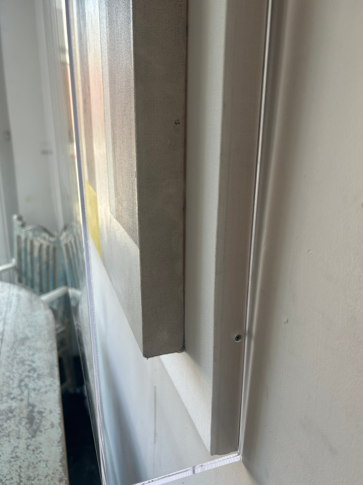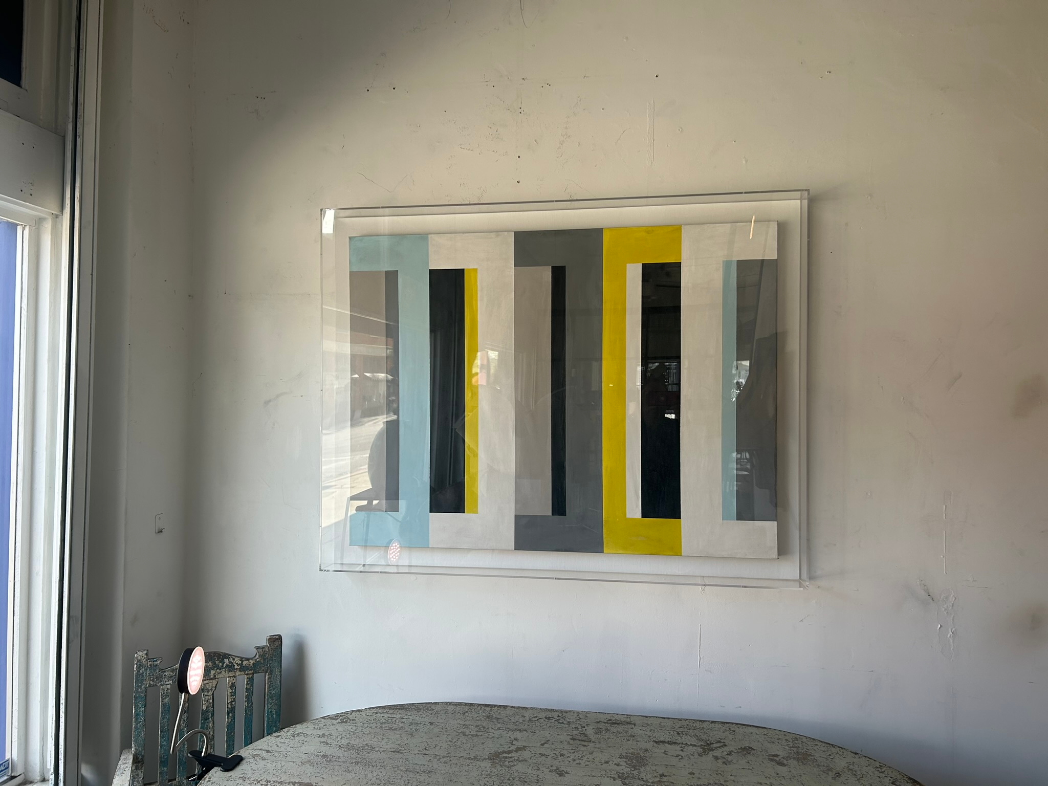 Abstract painting on canvas by John McLaughlin, in acrylic box frame.